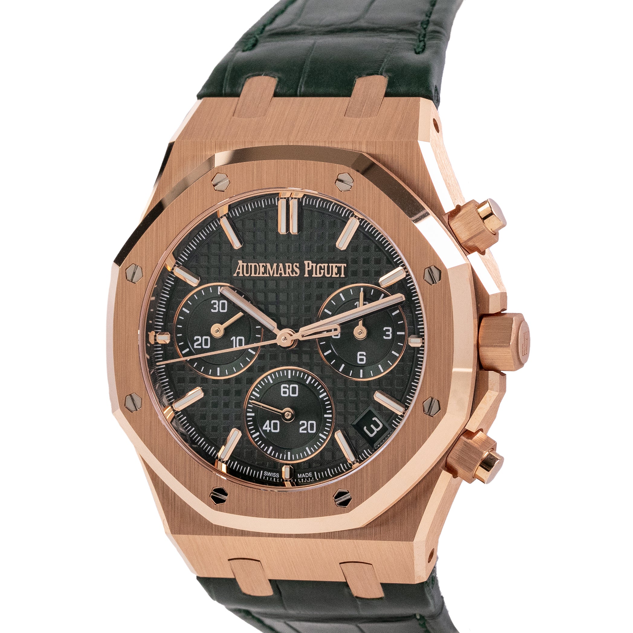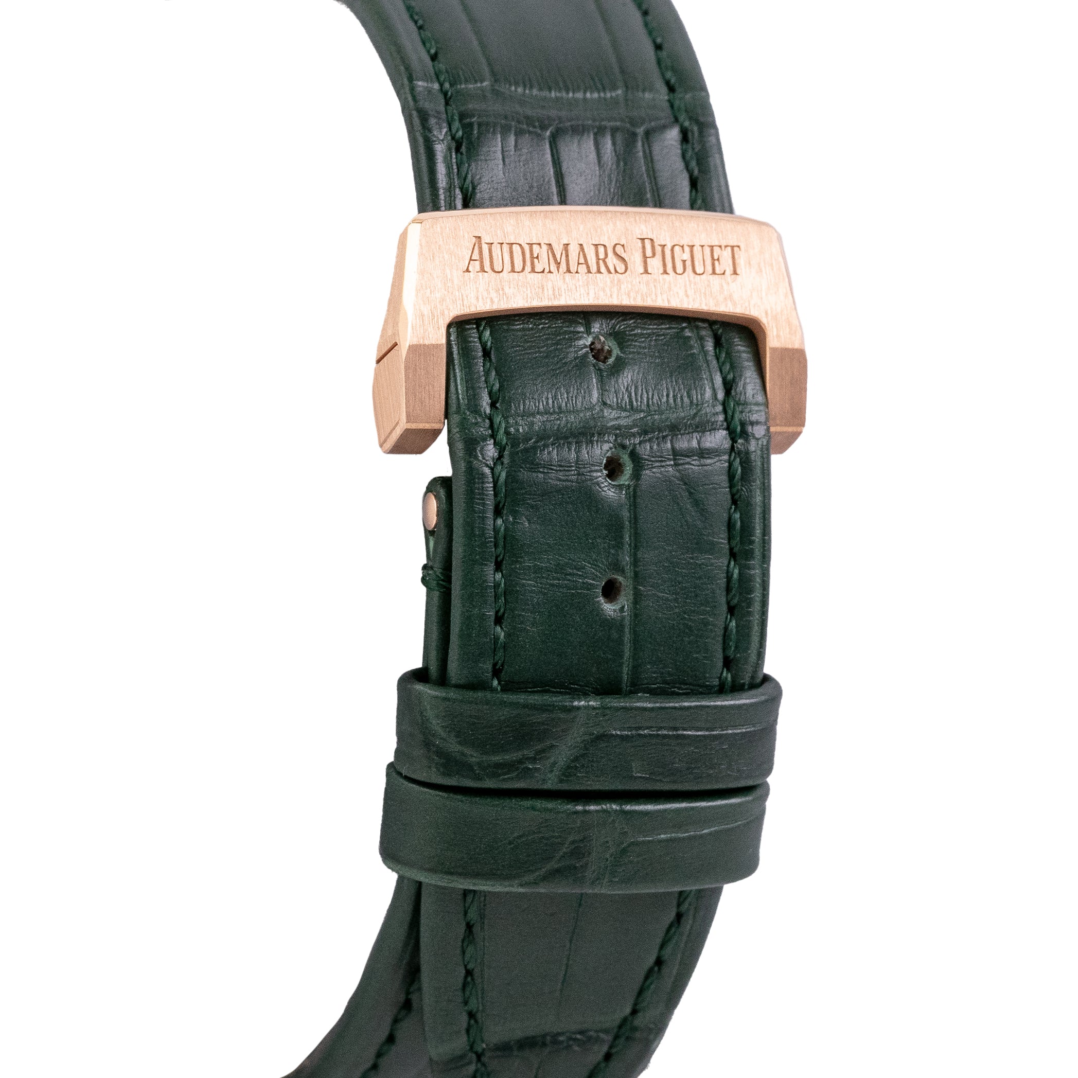 The Royal Oak Chronograph 26240OR makes a bold statement in full 18K rose gold, blending haute horlogerie with modern edge. Its refined case, flyback chronograph, and rich “Grande Tapisserie” dial mark a powerful evolution of an icon. Precision and presence in perfect harmony.