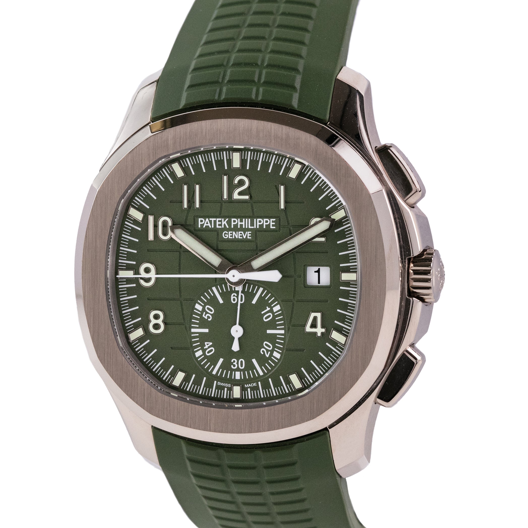 Experience the perfect blend of sportiness and sophistication with the Patek Philippe 5968G, a bold chronograph housed in luxurious 18k white gold. As part of the iconic Aquanaut line, this reference brings together contemporary design and horological excellence.