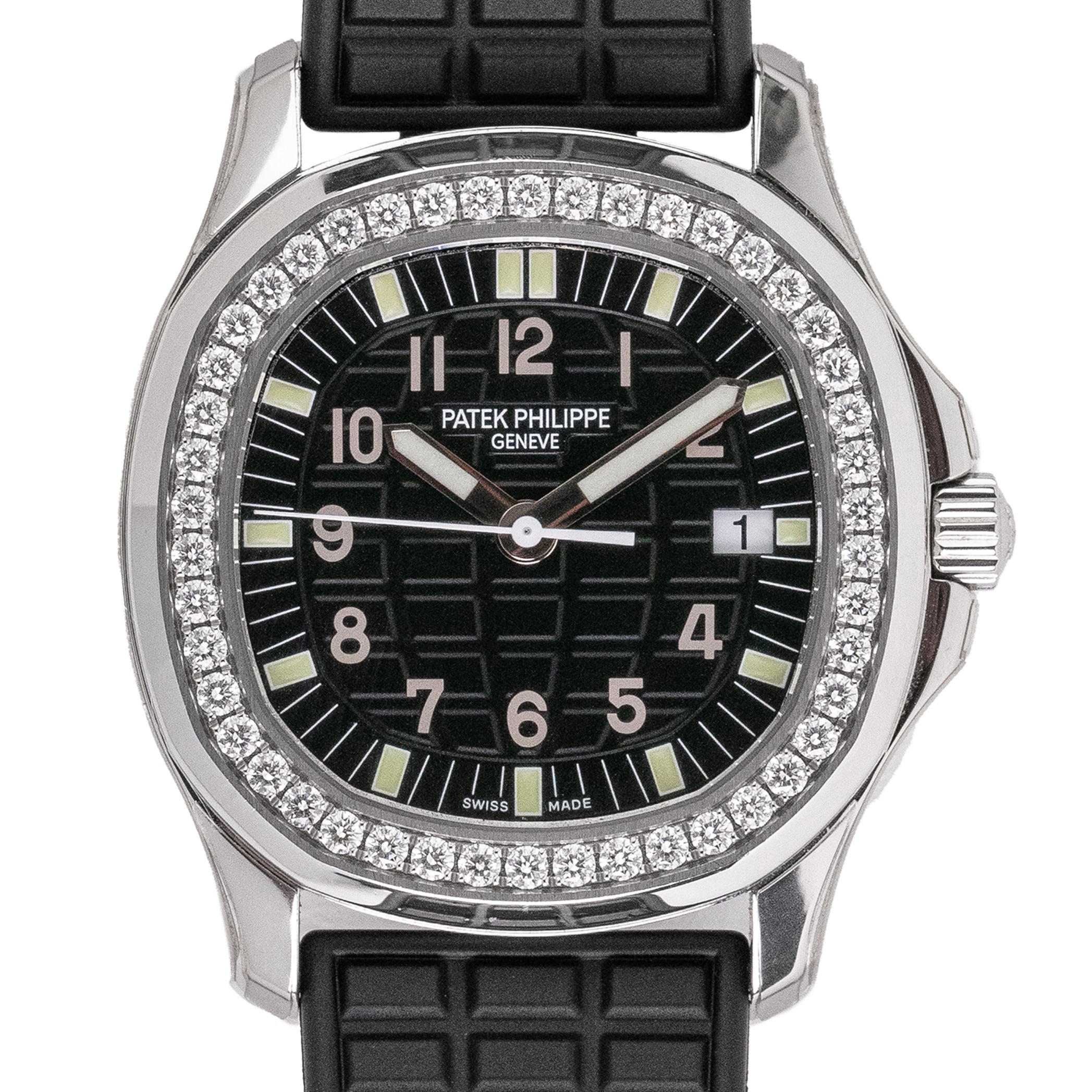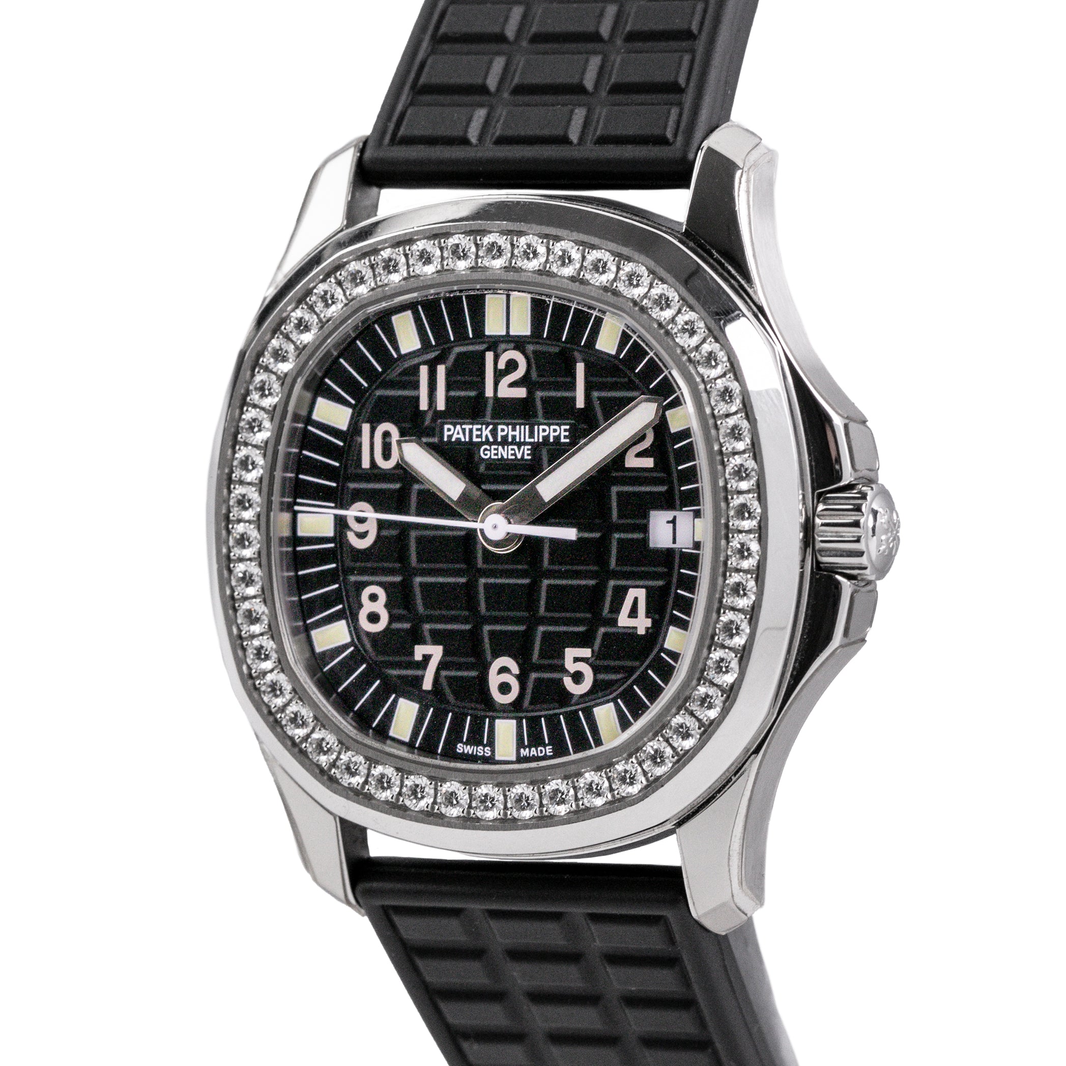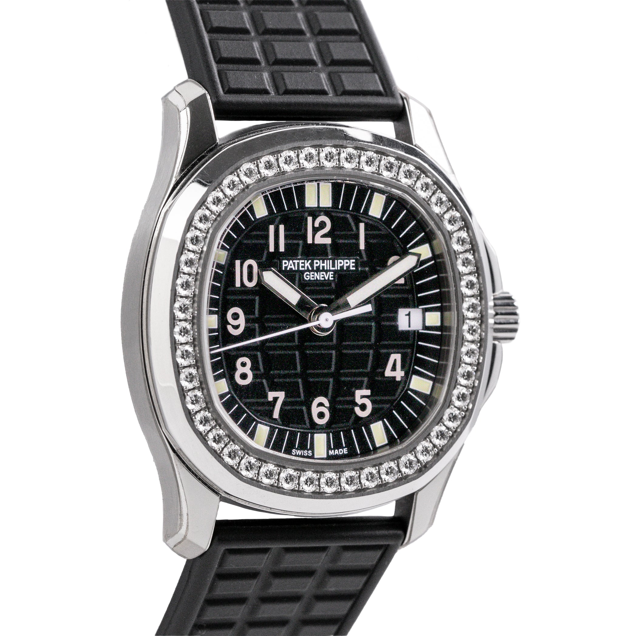 The Patek Philippe Aquanaut 5267 in stainless steel is a standout timepiece for those who appreciate subtle luxury with everyday wearability. The iconic rounded octagonal case is framed by a bezel set with brilliant-cut diamonds, giving the watch a refined sparkle without overpowering its sporty essence. The black dial features the signature Aquanaut embossed pattern, with crisp Arabic numerals and luminous white gold hands for optimal legibility.