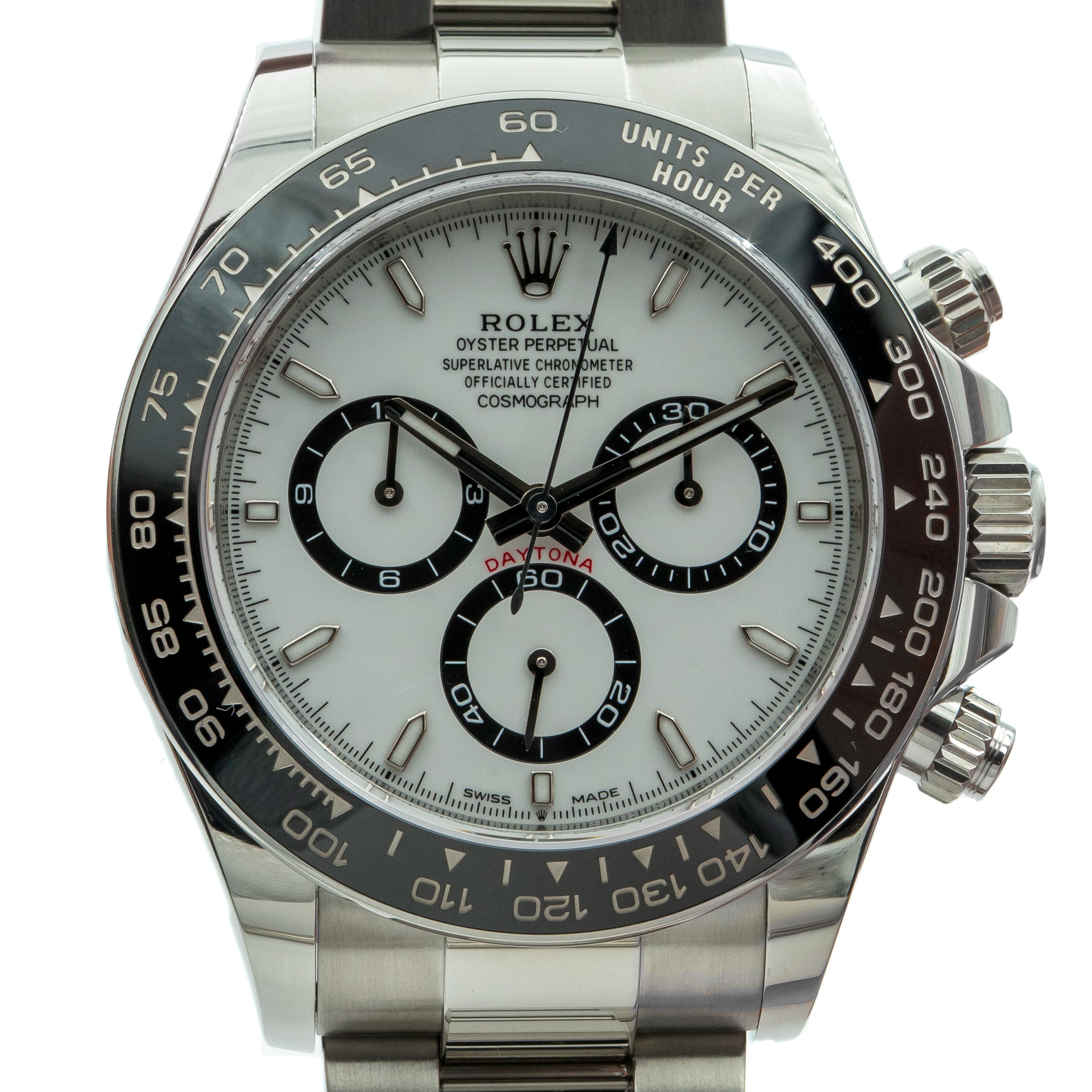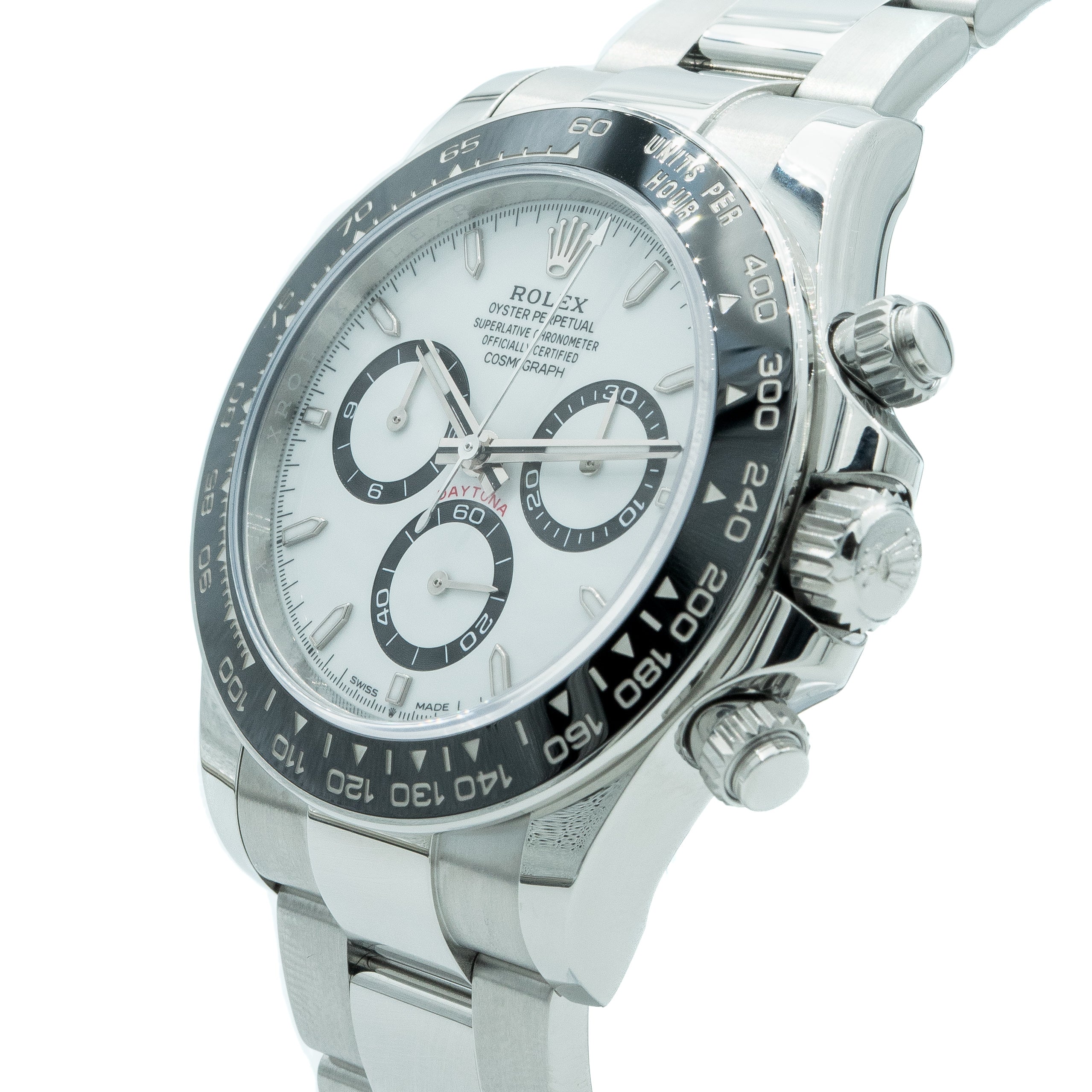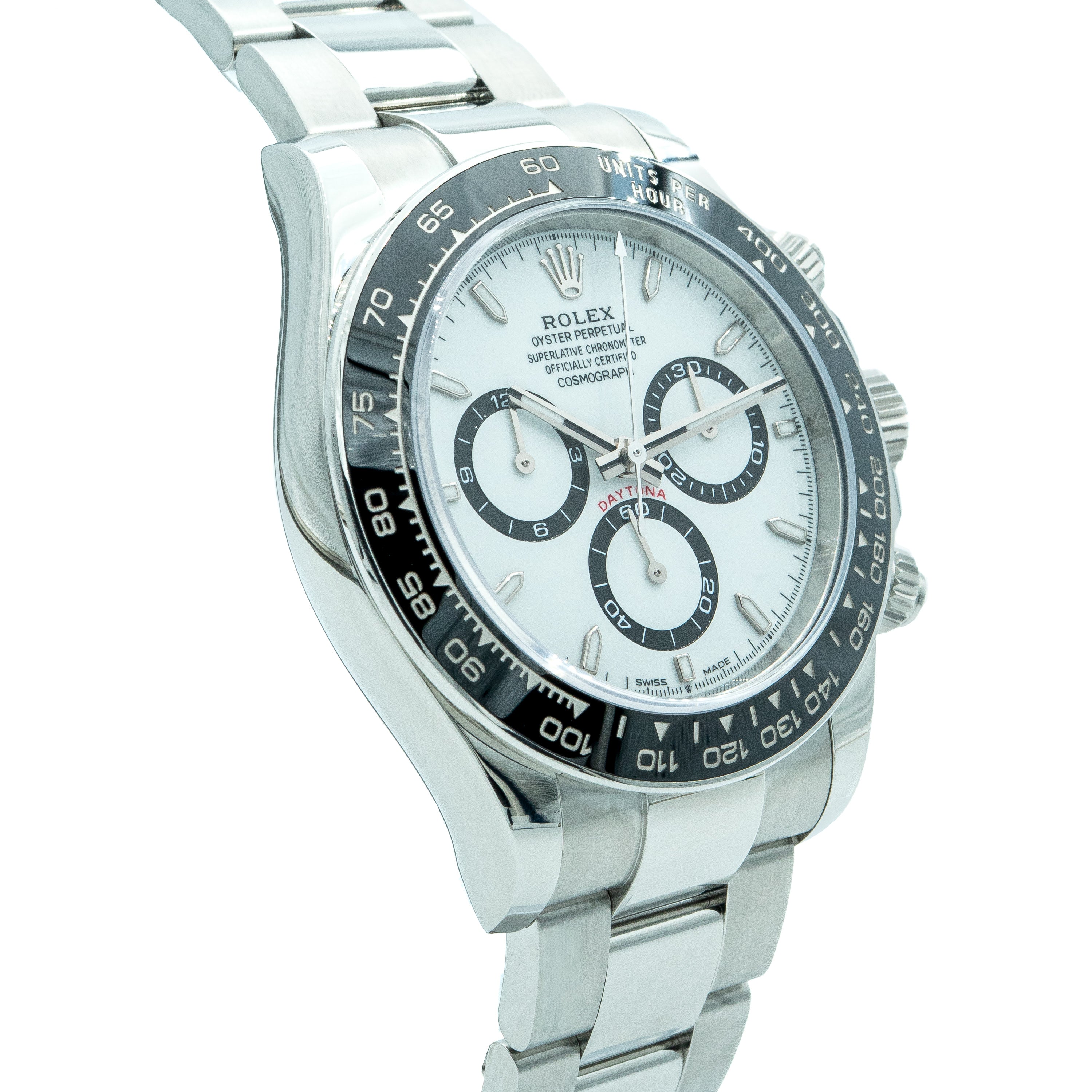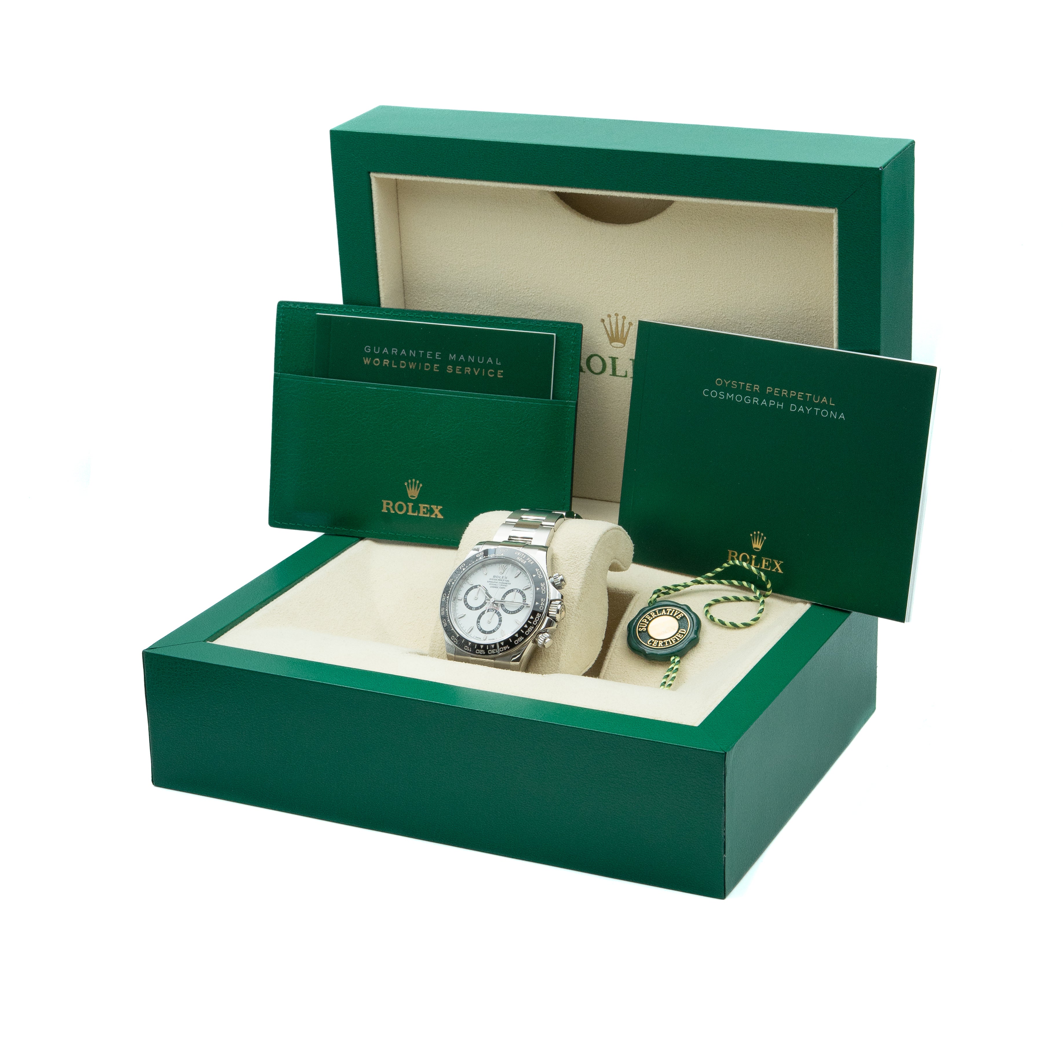 Rolex Cosmograph Daytona 126500LN “Panda” Our example is presented as a full set in stainless steel. This 2024 model features the latest generation Cerachrom bezel and the iconic white dial with black rings, famously known as the "Panda." Accompanied with dated warranty card, booklets and original Rolex box.