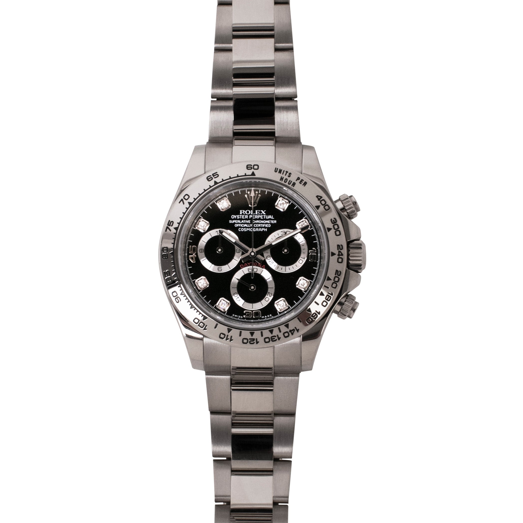 The 40 mm Oystersteel case embodies Rolex’s mastery of form and function. Its proportions remain faithful to the classic Daytona silhouette, yet subtle refinements - such as thinner lugs and more harmonious transitions between the bezel, case, and bracelet - lend a refined, contemporary presence on the wrist. The monobloc Cerachrom bezel in black ceramic provides exceptional scratch resistance and colour stability, with a tachymetric scale in platinum PVD that pays homage to the model’s racing pedigree.