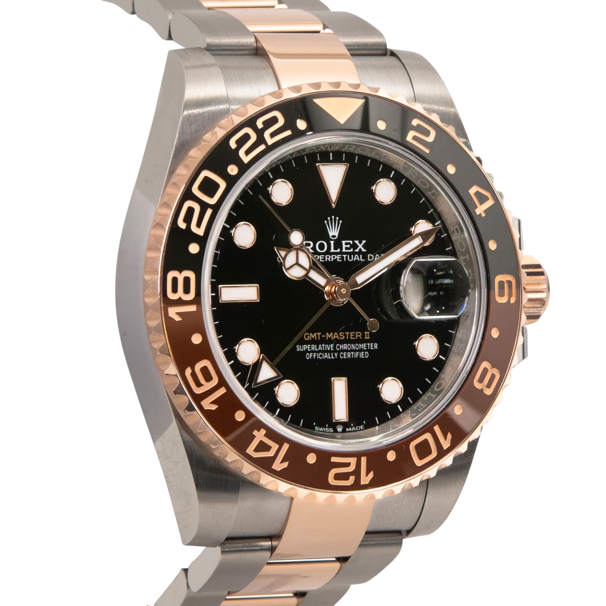 The Rolex GMT-Master II reference 126711CHNR, nicknamed the “Rootbeer,” is one of the most distinctive modern GMTs, blending professional functionality with luxurious design. Crafted in Oystersteel and 18k Everose gold, it features the iconic black and brown Cerachrom bezel, a nod to vintage GMT references while offering cutting-edge modern durability.