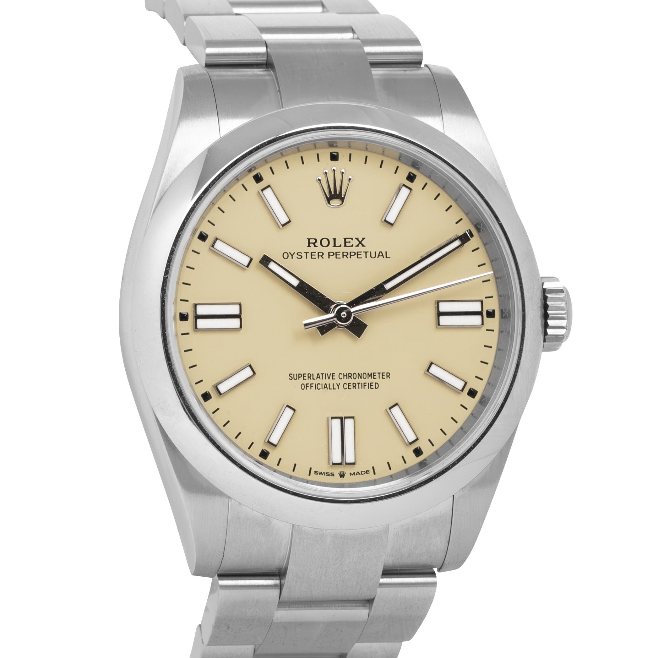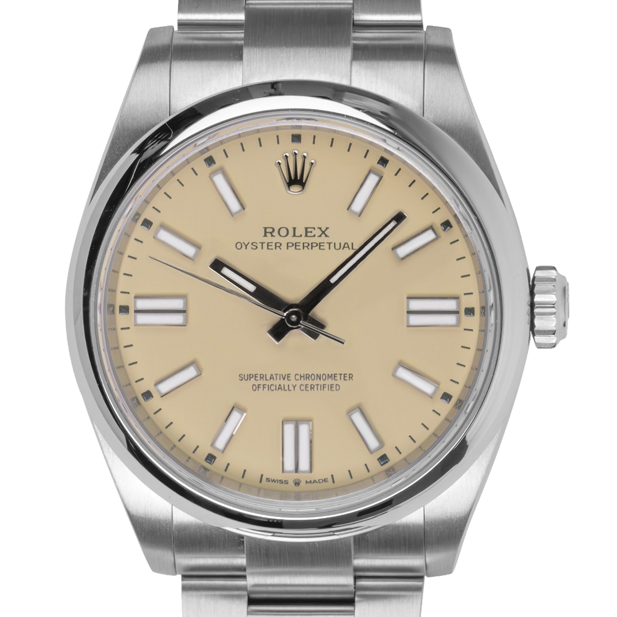The Rolex Oyster Perpetual 134300 in 41mm with the Beige dial represents the perfect evolution of Rolex's most versatile and minimalist collection. Released in 2024, this version features a soft, contemporary beige tone that brings warmth and elegance to the clean, symmetrical layout of the OP dial.
