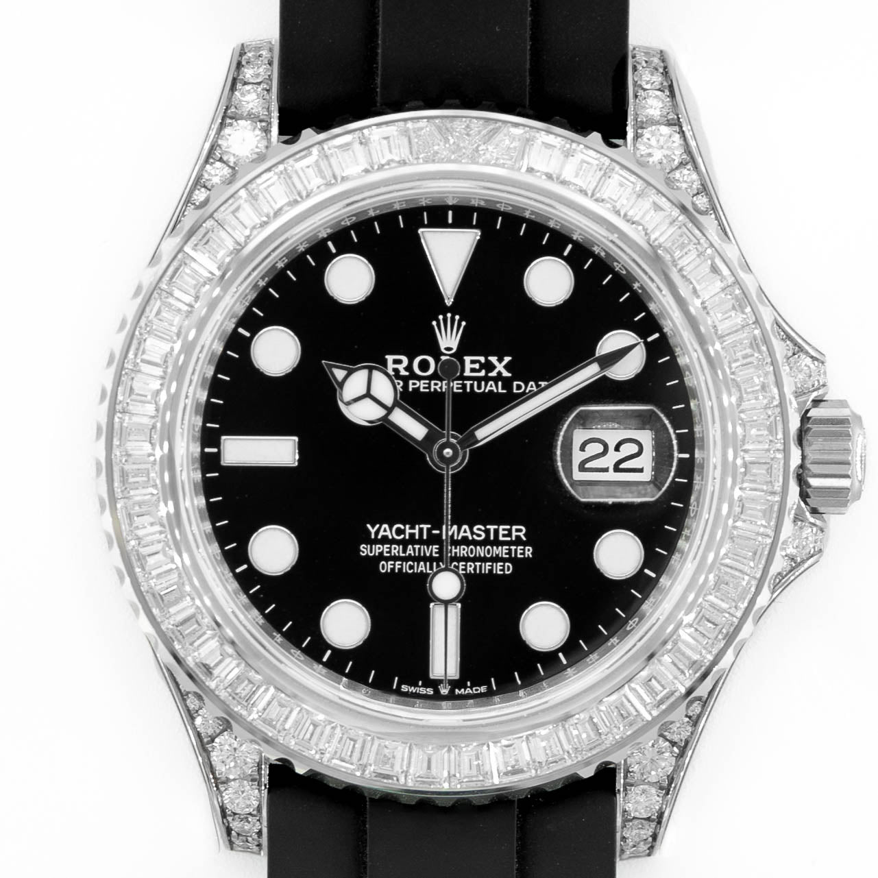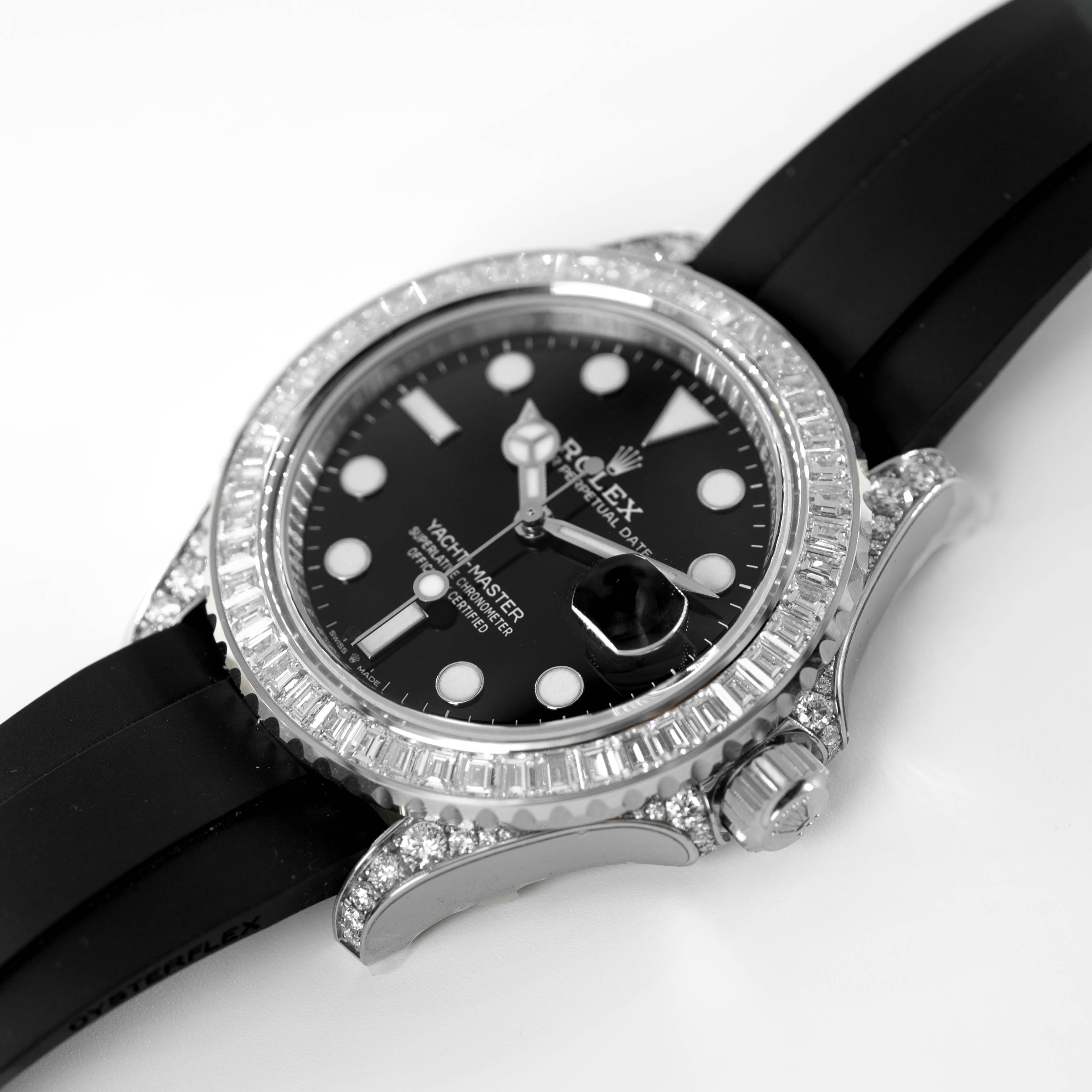The Rolex Yacht-Master 42 reference 226679TBR is one of the most prestigious and exclusive models in the current Rolex lineup. Crafted entirely in 18k white gold, this masterpiece is elevated by a factory-set diamond bezel and dazzling diamond-paved dial, making it one of the most luxurious sport watches Rolex has ever produced.