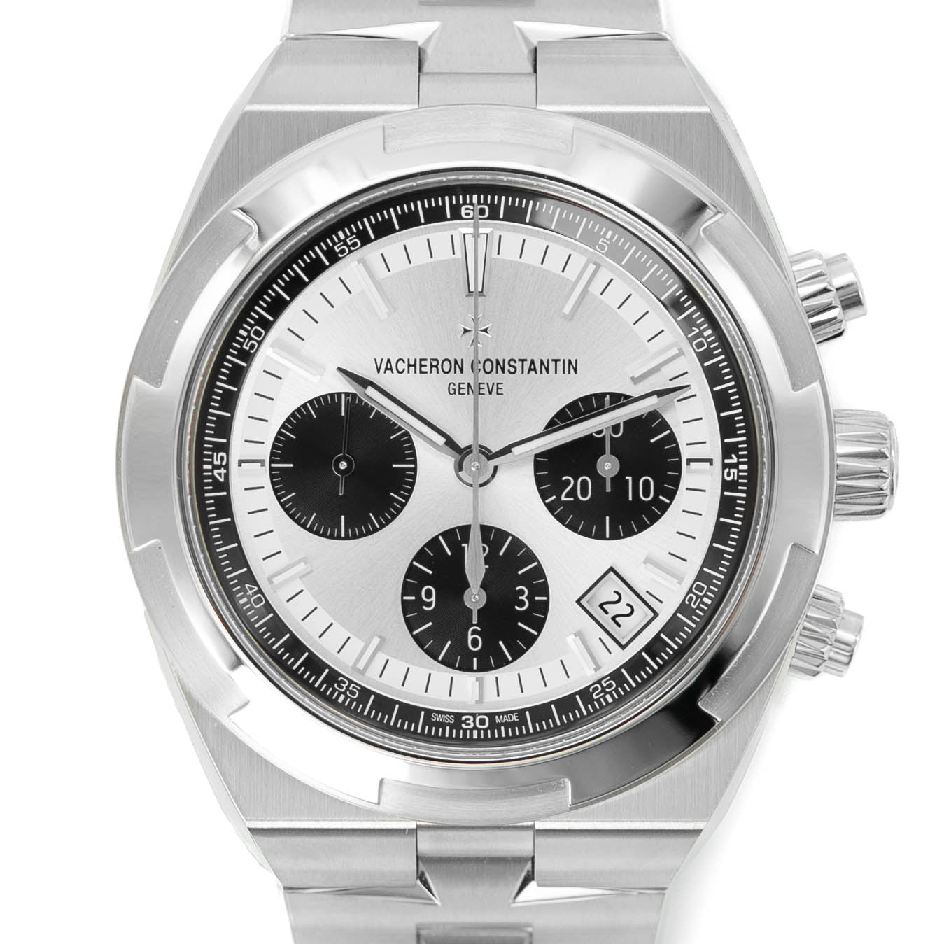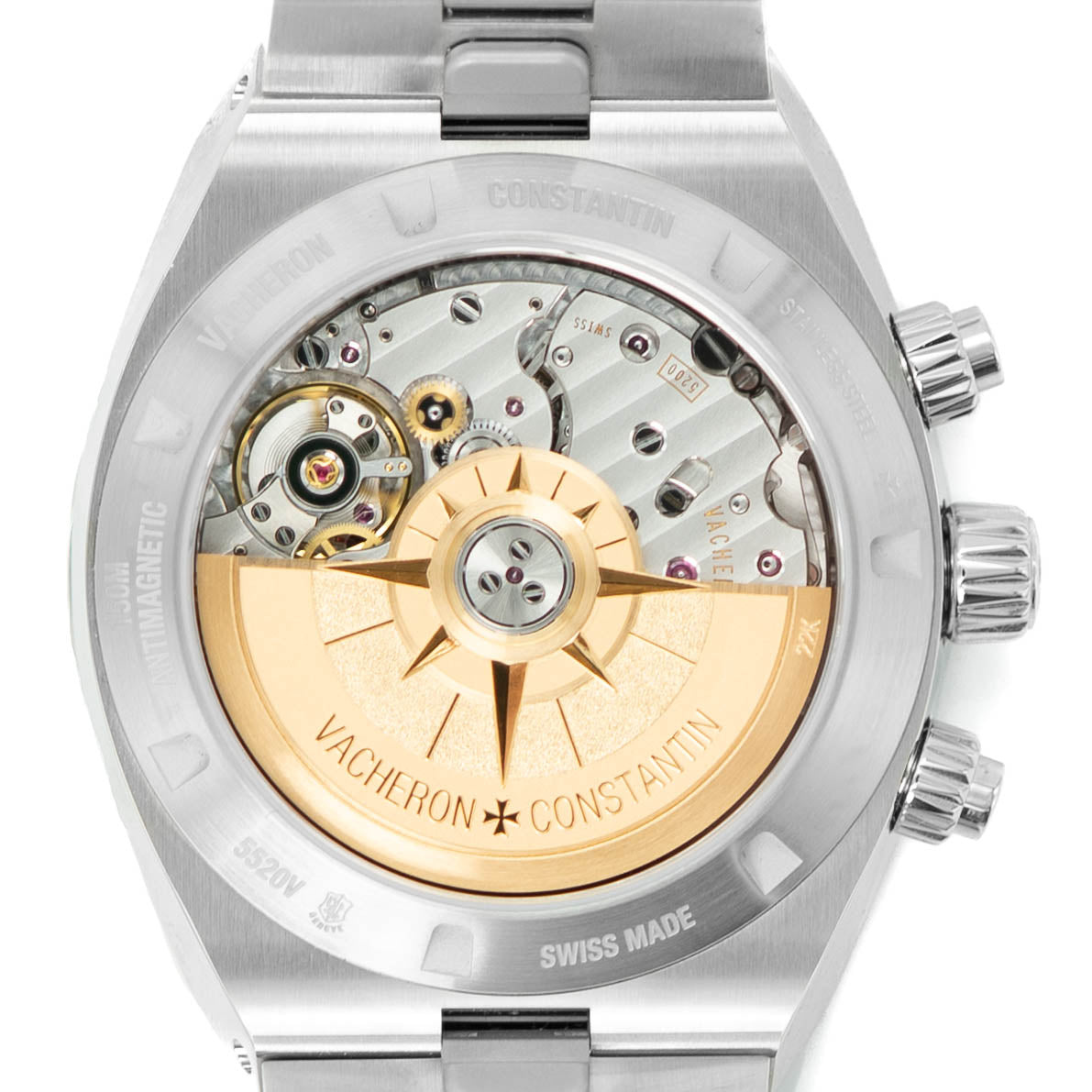 The Overseas Chronograph 5520V is a luxury sports chronograph designed as part of Vacheron Constantin’s modern “travel-inspired” collection. It combines a sporty integrated-bracelet design, a high-end column-wheel chronograph movement, and the brand’s signature haute horlogerie finishing, including the Geneva Seal.